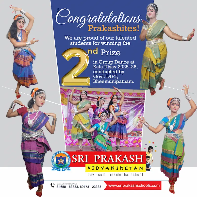 Prakashits won 2nd Prize in Group Dance at Kala Utsav 2025-26, conducted by Govt. DIET, Bheemunipatnam, Vizag.