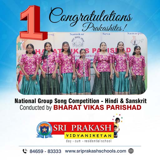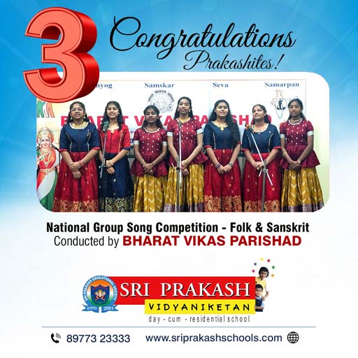 Prakashites bagged 1st and 3rd prizes in the National Group Song competition in Hindi & Sanskrit and Folk & Sanskrit categories, respectively, conducted by Bharat Vikas Parishad. Congratulations to the winners!