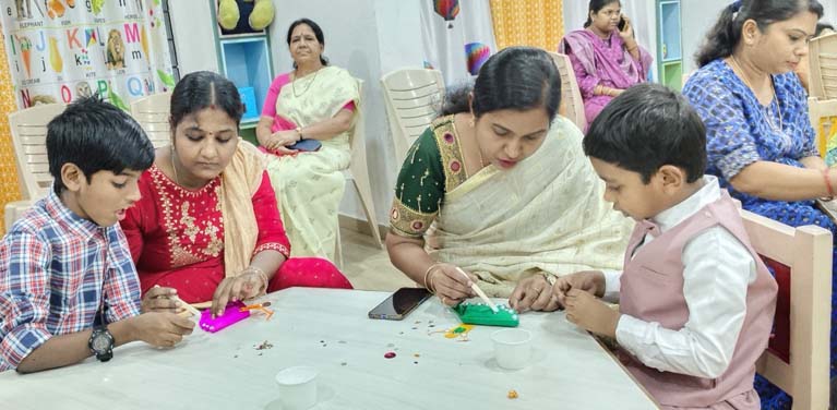 Adding a creative touch to the celebrations, a craft corner was arranged where parents and their little ones collaboratively made charming paper dolls using coloured paper, ice cream sticks, glue, and decorative kundans. This hands-on activity provided a wonderful opportunity for parents and children to bond while engaging in a joyful, artistic experience.