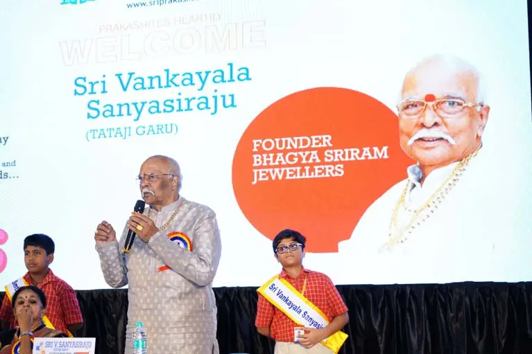 Sri Vankayala Sanyasiraju, Founder, Bhagyasri Ram Jewellers graced the occasion and addressed the parents and children with inspiring words